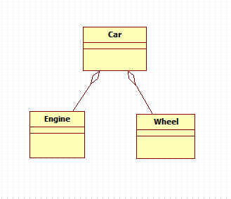 위 다이어그램에서 Engine과 Wheel은 Car와 집합관계이지만 차가 없어진다고 해서 Engine과 Wheel이 삭제된다고 보진 않았다. 물론 이 설계는 프로그램 설계 특성에 따라 변경될 수는 있을 것이다.