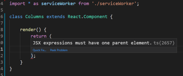 <Columns />는 HTML에서 <table>을 구성하기 위해 여러개의 <td> element 들을 반환할 것이다. React 에서는 component를 rendering할 때 최상위 노드는 1개 여야 하므로 아래와 같은 형태로 오류가 나지 않게 만들어야 되는데, 하지만 이렇게 되면 HTML의 <table>이 유효하지 않게 된다.