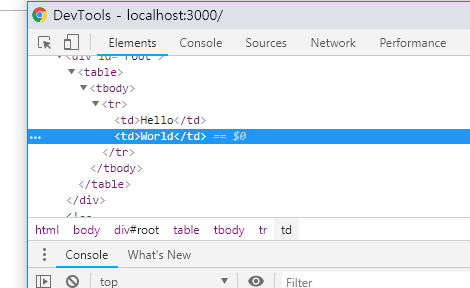 최상위 노드는 정말 1개 여야 할까? <div>를 없애고 <td>2개를 반환하려고 시도해보자.
